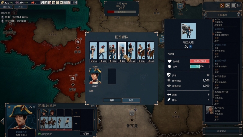 《波拿巴:机甲大革命》采用了上帝视角的呈现方式,这种视角非常适合回合制战略游戏,能让玩家全面掌控战场局势与政治地图。游戏将符合时代背景的线列步兵与架空历史的超强机甲并置于同一战场,创造出独特的视觉冲击力,让玩家在18世纪的巴黎街头目睹巨像机甲的轰鸣冲锋,形成强烈的历史错位美感。