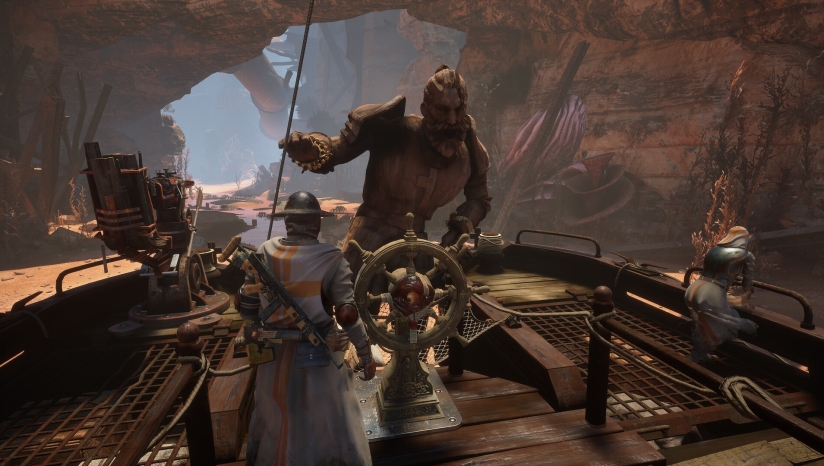 《峡谷》旨在呈现一个广阔而具有沉浸感的后启示录世界。游戏世界结合了程序生成技术的随机性与手工打造的细节,营造出既有变化又富有深度的环境。游戏画面注重表现环境的荒凉与宏大,巨大的爬行者在峡谷中行驶的场面尤为震撼。游戏世界的天气系统动态而不可预测,可能包括沙暴等恶劣天气条件,进一步增强了世界的真实感和挑战性。