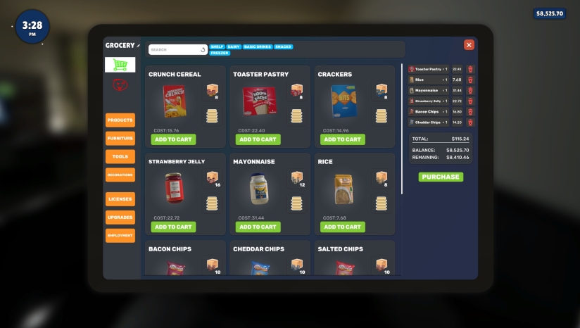 游戏采用3D画面呈现,虽然不追求照片级的真实感,但以简洁明快的视觉风格营造了一个充满活力的杂货店环境。游戏画面注重功能性,让玩家能够清晰观察商店的各个区域,方便进行管理和决策。这种设计理念使得游戏在视觉上更加友好,适合各年龄段玩家。游戏中商品和商店设施的建模细致,能够清晰展示不同商品的种类和商店的升级变化,增强了经营模拟的真实感。