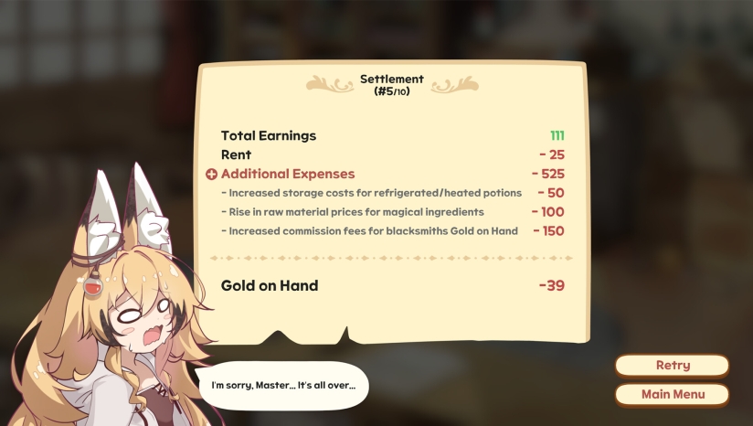 結算時間:到了结算时间!确认是否达成了目标收益。如果失败了……百货铺就会破产哦!