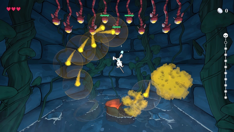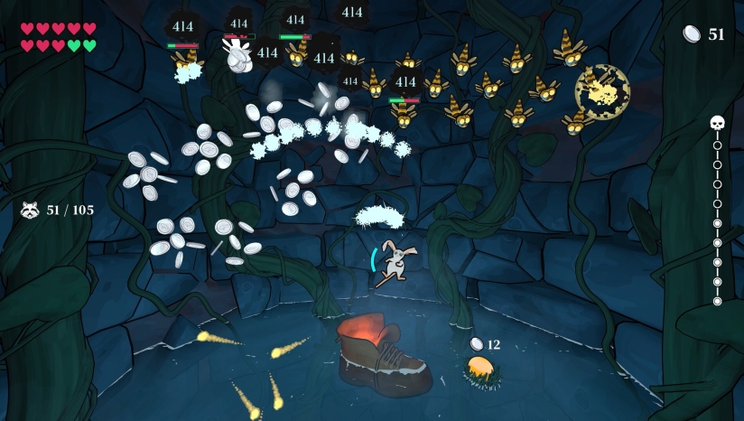 掌握这个独具特色的操作方式吧。你操控一只小飞鼠,通过左右扇动耳朵来飞行——快速扇动可以上升,缓慢扇动则会下降。你还可以横向冲刺,躲避棘手的弹幕。这个优雅的操作机制容易上手,却能展现丰富且灵活的操作技巧。