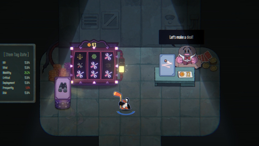 在褪色的卡通赌场世界里,退役冰球选手企鹅对抗蜂拥而至的怪物群。用球杆弹开一切,时而遇见幸运,时而陷入危险。你会堆积筹码选择安全,还是在轮盘上孤注一掷突破绝望?在这款离奇的生存射击游戏中,你的选择与本能将接受考验。