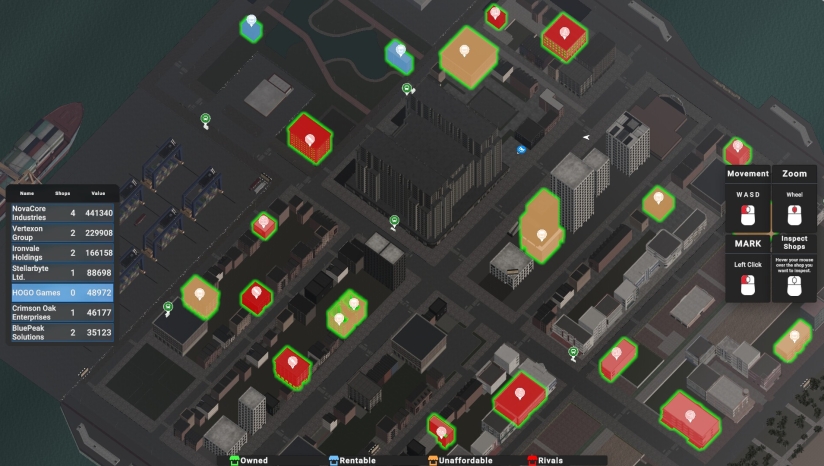 游戏的核心玩法围绕企业战略规划与资源管理展开。玩家初始仅拥有少量资金,需通过市场调研、选址开店、定价策略和成本控制来积累资本。玩法涵盖多个维度:包括投资房地产、股票交易,或经营咖啡店、KTV、科技公司等多元产业。游戏中,玩家需招募员工、培养团队能力,并应对随机事件如机器故障、经济波动等挑战。随着业务扩展,玩家可解锁新城市地图,通过并购竞争对手或开发新产品来扩大商业版图。游戏还融入政治博弈元素,玩家可通过声望积累或策略合作影响城市政策,为商业活动谋利。