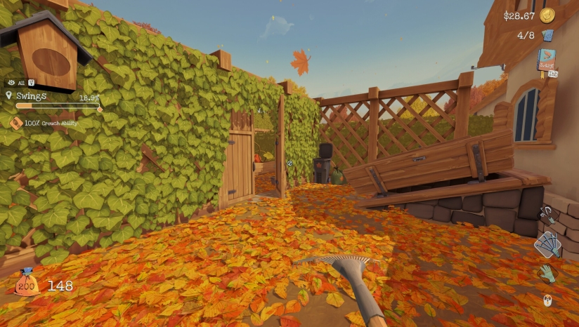 采用物理引擎还原落叶飘落轨迹与堆积逻辑,配合实时天气系统(雨雪会影响叶片黏附度),加上踩踏落叶的拟真音效与渐进式背景音乐,构建出极具代入感的劳作氛围。
