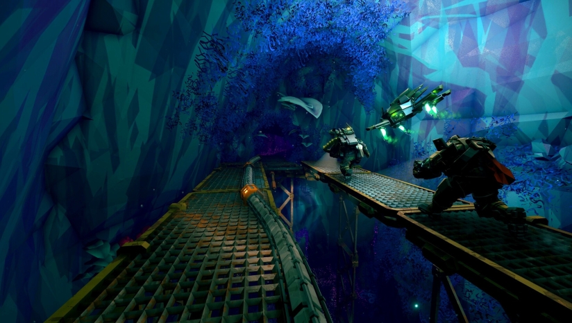 《深岩银河:狂乱核心》将延续系列Low-poly风格的美术设计,并在此基础上进一步优化。游戏世界将继续呈现为丰富多彩且充满细节的外星环境,搭配动态光照系统,在幽闭的洞穴中营造出紧张刺激的氛围。本作将保持原作流畅的运行优化,确保即使在大量敌人和复杂环境破坏效果同时出现时,也能保持稳定的帧率。