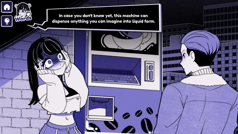 游戏背景设定在一个充满神秘色彩的特异空间内,玩家将面对一位神秘女孩和一台看似普通却拥有超自然力量的咖啡自动售货机。这位少女不会直接表明自己的身份、来历或咖啡机的真相,她只要求玩家输入任何一个英文单词,然后按下按钮。咖啡机仿佛拥有响应一切请求的能力——无论你输入“血液”、“唾液”甚至“死亡”,它都能生成相应的液体。随着游戏推进,咖啡店和这台异常咖啡机背后的秘密逐渐浮出水面,玩家需要通过不断实验,揭开隐藏在单词输入背后的真相。