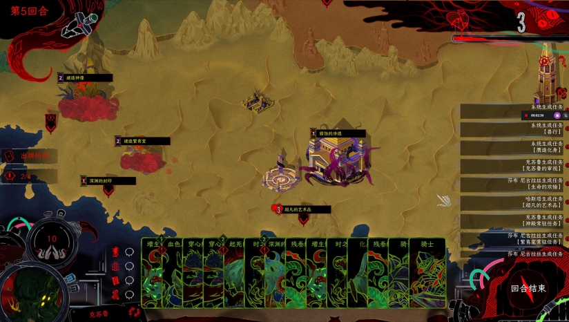 采用回合制卡牌构筑与区域争夺核心机制,玩家需通过神殿产出信仰值、教堂获取天启点(行动点数)推进进程。核心目标为占领全部教堂或完成成神任务,7天时限内需合理搭配使徒卡、道具卡完成任务,结算时通过骰子判定成败。祭坛可献祭使徒换取稀有卡牌,但前期需谨慎使用避免资源短缺。