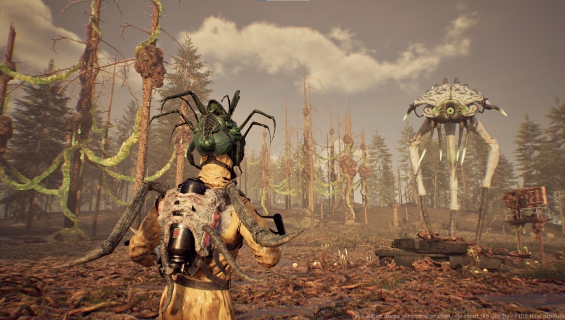 游戏采用第三人称视角,核心玩法融合了生存资源管理与高强度射击战斗。玩家需要在广阔而危险的环境中探索,搜集物资,制作武器装备,并与各种昆虫状敌人交战。最引人注目的是其独特的“寄生控制”系统——玩家可以直接控制敌方生物,利用它们与敌人战斗,甚至能让周围的生物自相残杀,为战术选择提供了更多可能性。此外,游戏还引入了“物质吸收”机制,允许玩家以逐渐失去人性为代价,将击败的敌人物质吸收到体内,从而获得特殊能力,这一过程将直接影响角色状态与游戏进程。