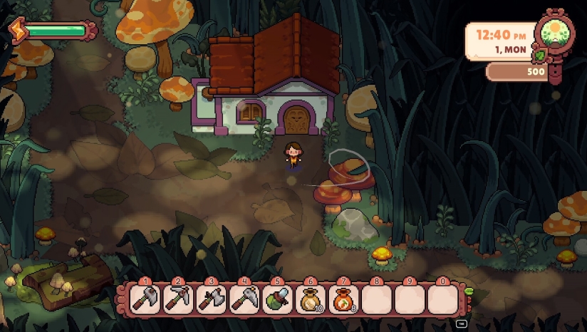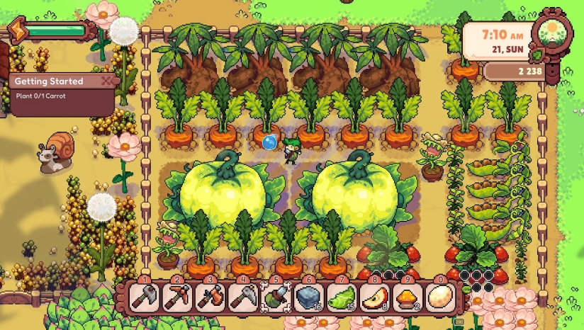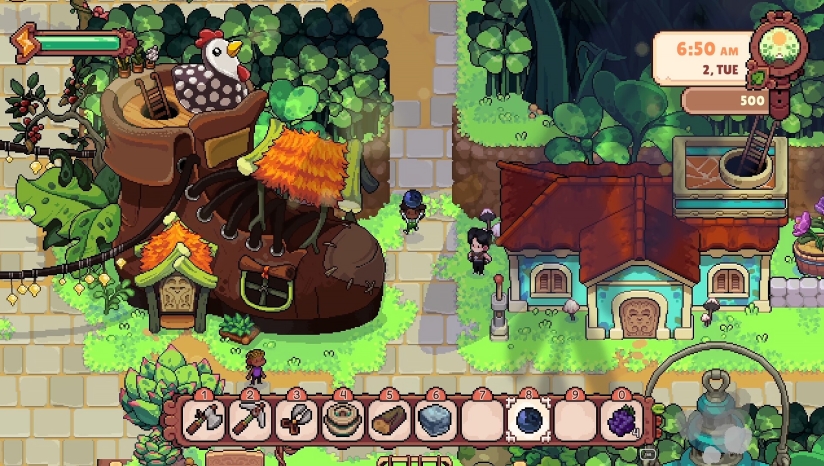 游戏的核心玩法融合了农场经营、社交互动与轻量解谜。玩家需要耕种巨大的作物,发射水滴进行灌溉,将胡萝卜和南瓜等作物切片收获,并照料包括飞蛾、蜜蜂、蝴蝶和瓢虫在内的农场昆虫,这些操作都因微观视角而变得新颖有趣。除了经营农场,玩家还可以与镇上性格各异的居民建立联系,通过触发温馨的事件故事,甚至为孤独的居民牵线搭桥。随着友谊的加深,小镇的等级会提升,解锁新的商店与设施升级,从而带动整个社区焕发新生。