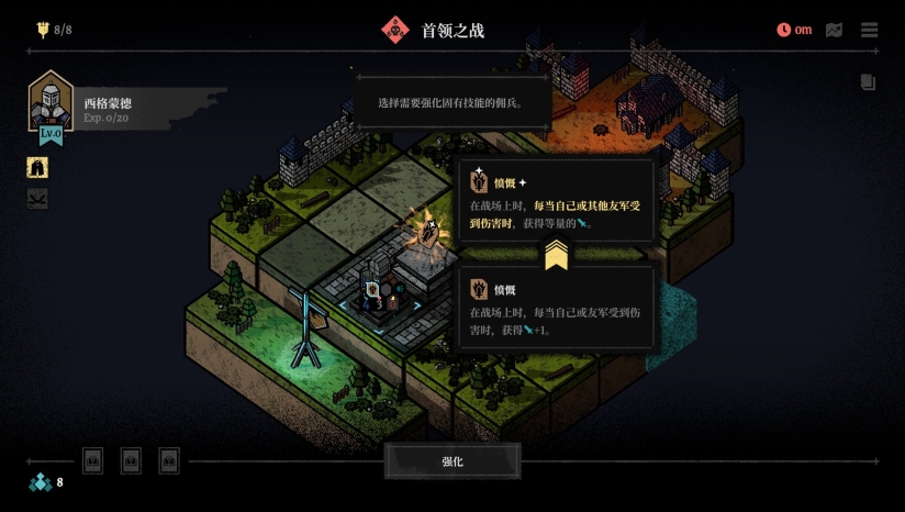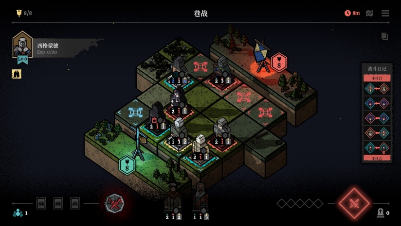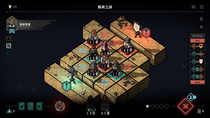 游戏核心玩法巧妙融合了卡牌构筑、战棋策略和Roguelike元素。玩家需要从三个初始卡组中选择一个开始冒险,每个卡组包含三个自带技能的佣兵,代表不同的基础流派。在战斗中,玩家每回合有3点行动力,可用于召唤佣兵(消耗2点)或移动场上单位(消耗1点)。战斗采用自动战斗与手动操作结合的模式:佣兵被部署到战场后会根据属性自动开展战斗,但玩家可通过移动单位来改变战局。每个佣兵都有力量、生命和速度三种属性,速度决定行动顺序,当双方佣兵相邻时自动战斗。