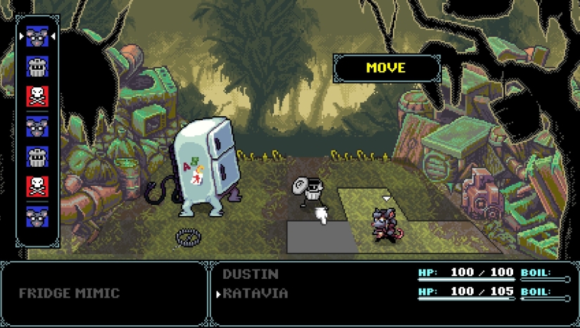 本作采用经典的回合制网格战斗系统,融入了时机打击机制,增强了战斗的策略性与操作性。游戏没有任何随机遭遇战元素,所有敌人都可以在场景中提前看到,玩家可自主选择应对策略或规避。探索是游戏的核心内容之一,玩家需要频繁切换角色,利用每个角色独特的场景互动技能(如锈蚀、攀爬、射击、泡泡等)破解场景谜题,解锁新区域。游戏还重现了SFC时代的Mode 7世界地图,供玩家自由探索。