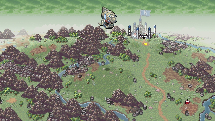 游戏在视觉上全面复刻90年代日本JRPG的经典风格,采用16位像素美术画面,致力于让玩家重新体验SFC(超级任天堂)时代独有的冒险魅力。游戏特别重现了SFC标志性的图形显示模式“Mode 7”世界地图,这种技术在当时用于实现伪3D旋转和缩放效果,为玩家提供了原汁原味的复古视觉体验。游戏场景设计充满了创意,从垃圾王国的各种环境到地下城和Boss战,都体现出开发者对经典JRPG的深刻理解与致敬。