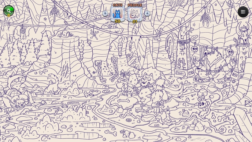 本作最显着的特点是海量的隐藏内容,总计有近千只猫咪和其他物品等待发掘,保证了游戏的可玩时长和重复游玩价值。游戏独特的色彩解锁机制是一大亮点,每找到一只猫,场景的相应部分就会恢复颜色,这种视觉反馈带来强烈的满足感和推进动力。此外,收集元素也十分丰富,特殊猫咪卡片、多达53项的Steam成就以及额外解锁内容,为喜欢完成的玩家提供了充足目标。