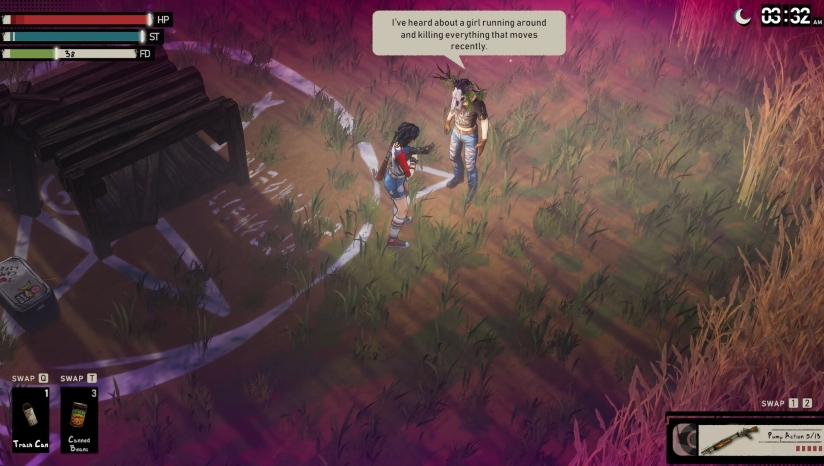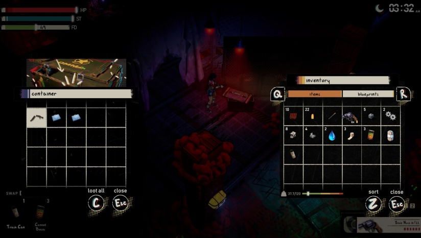 游戏画面融合了大胆浓艳的色彩与夸张的复古漫画风格,以独特的视觉语言呈现80年代恐怖美学。等距视角(俯45度)不仅提供了战略性的观察角度,还与美式漫画风格相得益彰,创造出极具视觉冲击力的画面效果。游戏中各种变异动物、不可名状的触手和“有角人”等超自然元素设计,都散发着浓厚的80年代恐怖电影氛围。