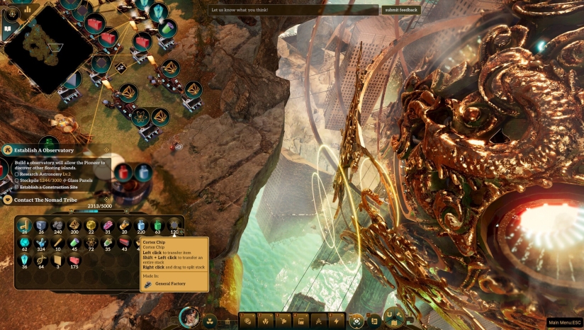 这个世界由多个浮空岛组成,每个岛屿都有独特的地貌与生态系统。有的资源丰富,有的蕴藏着科技突破。你将利用它们的独特优势,驾驶你的巨型飞艇:一座在空中漂浮的移动工厂舰队,往返于各个浮空岛之间,构建全球化的生产网络。