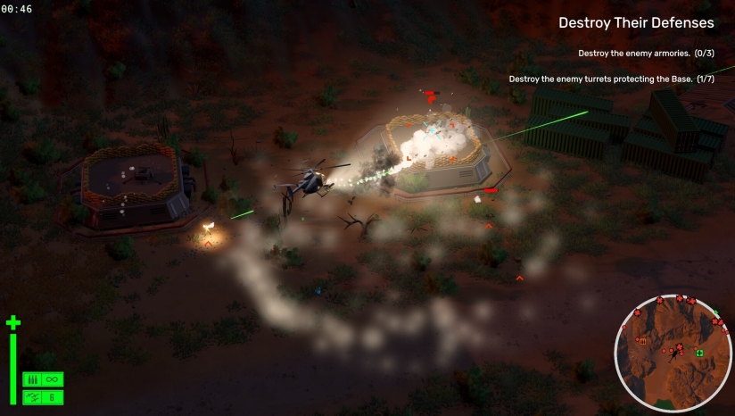 《允许开火》是一款拥有优秀物理效果和轻度战术元素的复古风直升机射击游戏。射击,躲避,在战场上移动你的小队,几乎一切都能用绳子和磁铁吊起。