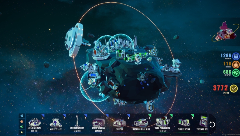 灵感来自Islanders等极简城市建造游戏,在保持相似节奏与美术风格的同时,依托科幻背景引入了全新的玩法机制。玩家需在小行星上通过策略性布局建造殖民地。