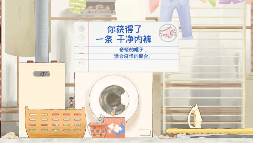 《随机鼠》在视觉上采用了完全手绘的艺术风格,整体画面模仿了水彩画的质感,营造出一个精巧而可爱的世界。房屋内的场景如同翻开的绘本,每一个细节都充满了手绘的温暖与诙谐怪趣的个性。这种艺术风格不仅让游戏世界显得生机勃勃,也与鼠鼠们可爱的主角形象相得益彰,共同为玩家提供了一场轻松愉快的视觉盛宴。