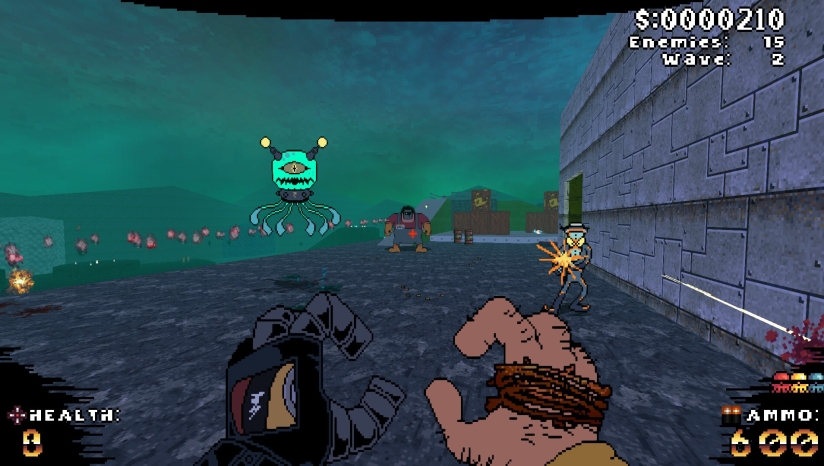 《Captain Wayne》采用了独特的手绘卡通艺术风格,画面表现上兼具复古感和现代创意。游戏场景和角色都是精心手绘而成,营造出一种幽默不羁的视觉体验,既像是一款可交互的卡通片,又保留了经典第一人称射击游戏的激烈战斗感觉。这种2.5D的表现手法既致敬了复古射击游戏,又通过手绘艺术风格赋予了游戏独特的视觉魅力,让八个不同的场景各具特色,充满活力。