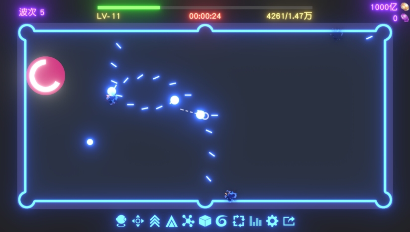 1、20 + 专属技能弹珠:发射激光、爆炸连击、等特性各异,策略搭配无上限,挂机时也能发挥技能联动效果。