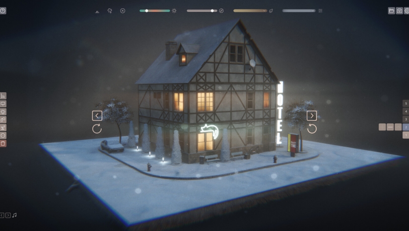 《Lonely House》的最大特色在于其无压力的创意模式。游戏取消了传统游戏的进度压迫感,不设任务目标与计时限制,玩家可以像真实画家般反复试错,纯粹享受创作过程本身的乐趣。游戏的动态天气系统也是一大亮点,独创的气象控制器允许玩家召唤晴空万里或绵绵细雨,观察阳光穿透云层的丁达尔效应,感受雨水在窗棂上形成的水幕帘幕。游戏还充满了细节交互惊喜,当完成特定主题搭配时(如日式禅意风),会触发隐藏动画,如窗外突然掠过迁徙的雁群;精心养护的盆栽达到满级后,会在夜间绽放微光粒子特效。