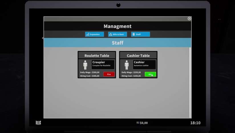 Casino Management Simulator 让你接管一家规模不大、经营困难的赌场——你的唯一目标,就是将它打造成一家成功且盈利的企业。设计场地布局、管理员工、监控财务,并确保顾客源源不断地进入赌场。放置老虎机、布置室内装饰,并优化每一个细节,打造顺畅高效、利润稳定的运营体系。