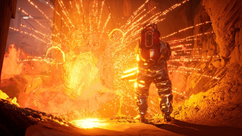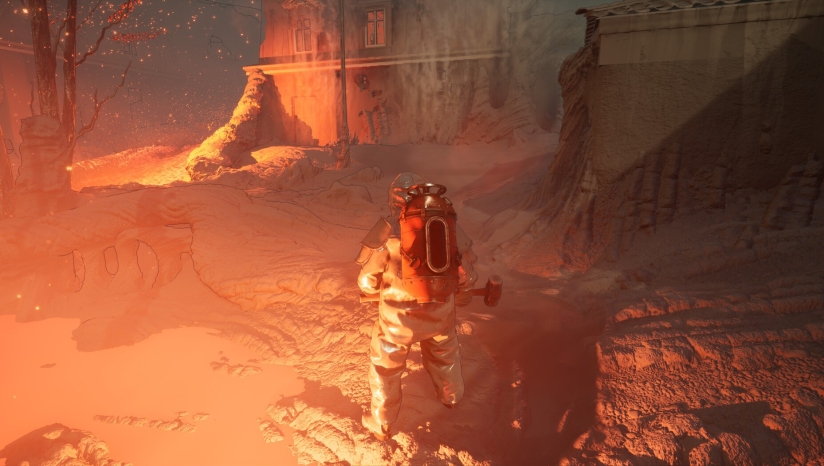 游戏呈现出独特的复古科幻美学风格,灵感来自经典科幻作品的黄金时代。视觉设计融合了科学雄心与民间传说,创造出一种兼具未来感和怀旧感的独特氛围。游戏世界通过强烈的环境叙事营造出极高的沉浸感,每一步探索都充满紧张与悬念。源自复古朋克风格的艺术设计,与火山爆发的灾难场景形成鲜明对比,既展现出自然力量的狂暴,又保留了科幻作品特有的奇妙感。