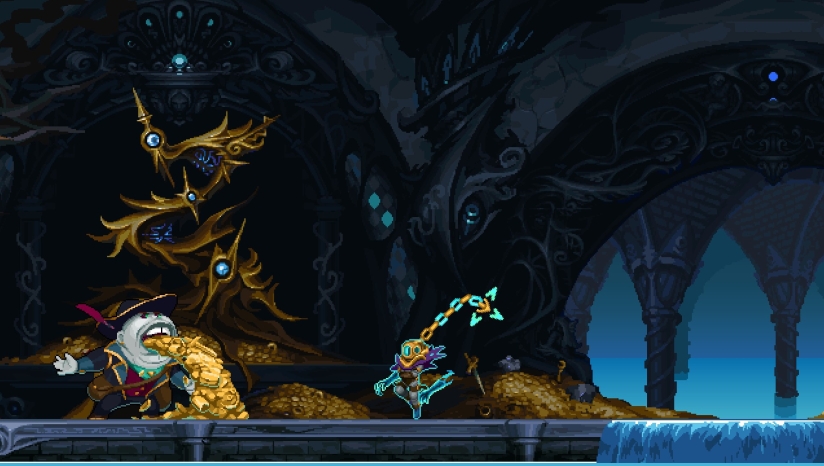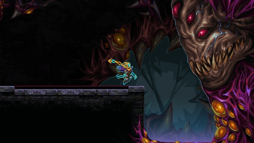 游戏采用精美的像素艺术风格,每个场景和角色都经过精心设计,带来视觉上的享受。从如画的风景到荒诞的场景,每个地方都各有其氛围和感觉,并由细节丰富、手工绘制的背景加以装饰。每个头目都有独特的个性,不仅在剧情中得以展现,而且还通过几十段独特的动画和环境中的互动予以强调。结合沉浸式的音效设计,游戏为玩家带来身临其境的视听体验。