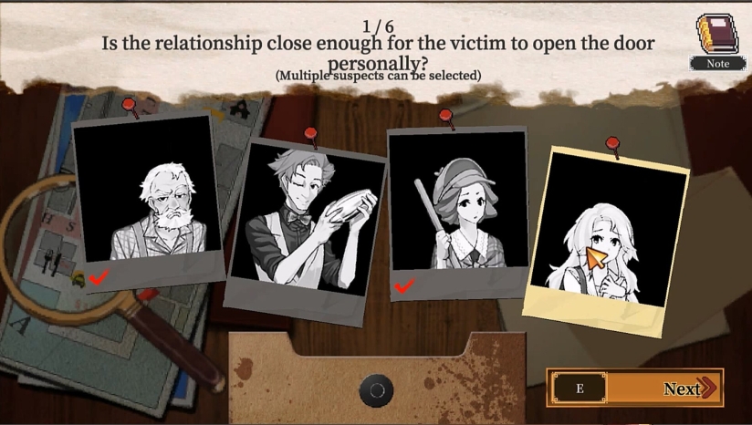 收集到的证据可在侦探事务所的「侦探之墙」上进行整理。逐一揭开被害人与犯人的关系、使用的凶器、案件经过,重构事件真相。当所有嫌疑人齐聚一堂时,能否识破谎言并指认最终的犯人,全靠你自己。