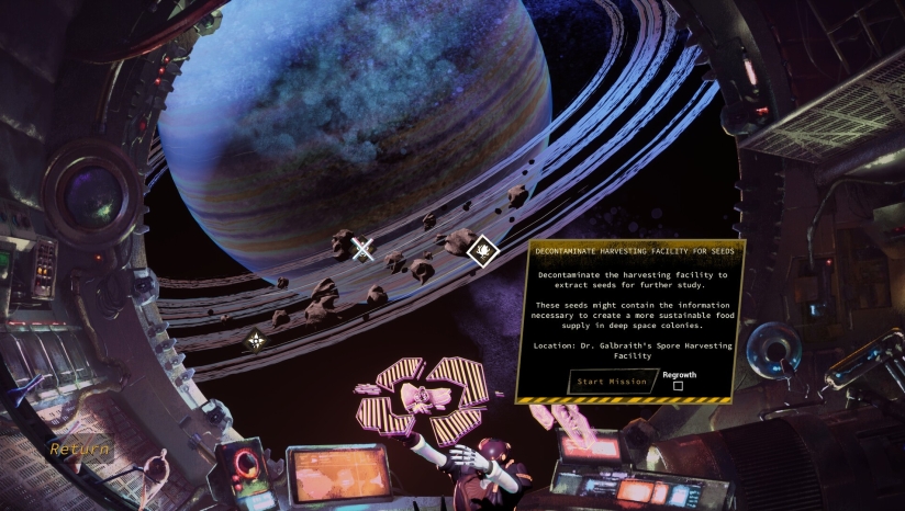 核心融合清理模拟与探索解谜:操控化学喷雾器清除致命真菌,收割菌株合成弹药、升级装备;使用牵引索在零重力区域导航,应对随机重力波动以探索隐藏区域;通过安葬受害者遗骸的“死亡仪式”解锁剧情线索,同时需谨慎收集资源避免破坏菌株。