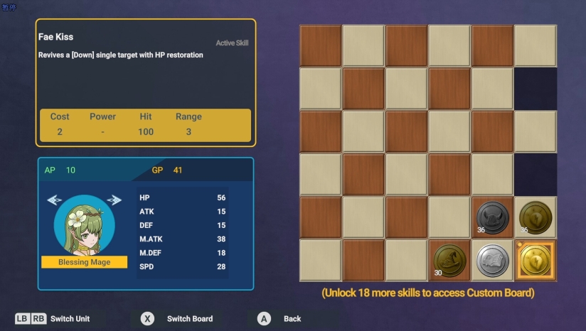 在游戏中每个角色都可以在技能棋盘进行养成,从而获得更强的基础属性和新的主动技能,甚至解锁新的角色。在某个单位养成到一定程度时,就能解锁自定义技能棋盘,使用特殊的道具,可以为角色自定技能学习的内容。充分发挥想象与策略,为喜欢的角色自定成长方向吧。