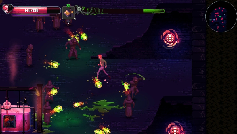 游戏采用等角视角呈现2D画面,营造出独特的视觉体验。游戏艺术风格紧密融合80年代复古元素与克苏鲁恐怖主题,创造出一个既熟悉又充满诡异气氛的游戏世界。游戏中的迈阿密镇地图广阔且相互连接,玩家可以自由探索小镇的各个区域,感受逐渐被恶魔侵蚀的小镇环境变化。
