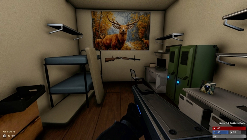 游戏核心玩法围绕生存资源管理和心理状态监控展开。玩家需要精打细算地分配有限的氧气、弹药和医疗物资,每一步行动都需要谨慎权衡。游戏创新性地引入了“双重状态管理系统”:不仅要关注角色的生命值,还需时刻监控精神健康值。面对恐怖景象时,角色会产生压力积累,一旦超过阈值,就会出现幻觉、听力失真等症状,甚至影响操作精度。与大多数恐怖游戏不同,本作鼓励玩家避免正面冲突。变异生物大多无法被杀死,潜行、躲避和逃跑才是上策。这些敌人对光线与声音极度敏感,会循声狩猎、协作围捕,甚至能学习玩家的行为模式。玩家可利用通风管道迂回、破坏灯光制造黑暗区域,或采用声东击西的策略规避追击。
