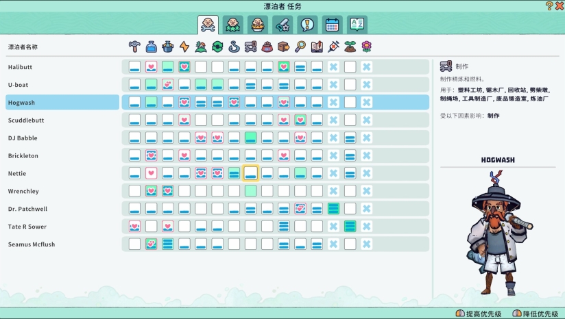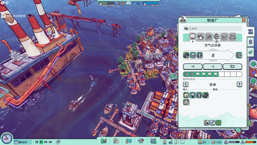 《浮游世界》的最大特色是“垃圾即资源”的循环利用机制。玩家将塑料瓶、废金属等废弃物转化为生存必需品,唿应现实中的可持续发展议题。游戏强调资源的循环利用与生态平衡,提供了独特的环保叙事视角。游戏采用了模块化扩张的城市建设系统,通过连接浮木、塑料板等搭建平台,逐步扩展城市规模,建筑布局需考虑承重与水流方向。沙盒模式允许玩家自由选择发展方向(如军事扩张、贸易繁荣或科技文明),没有固定目标。游戏中的每个漂泊者都有自己的故事,完成他们的个人任务将解锁新建筑与游戏机制。动态的环境变化,如洋流带动垃圾分布,昼夜循环与天气系统影响资源获取,增加了游戏的可玩性和挑战性。