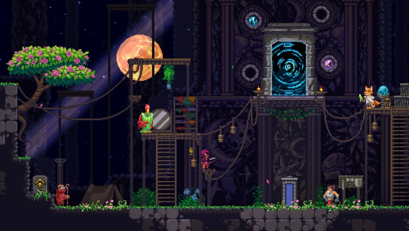 游戏采用精美的手工像素艺术和动画,由Jessica Turner和Lachlan Cartland等艺术家打造,呈现出色彩鲜明、细节丰富的2D世界。像素风格不仅复古,而且通过动态的光影效果和流畅的角色动画,赋予了场景生机与活力。不同的世界主题在视觉上各具特色,从潮汐走廊的幽蓝水域到熔岩地带的炽热红光,都通过像素艺术得到了生动的展现。自定义角色皮肤和服装颜色的设计也为玩家的个性化体验增添了乐趣。