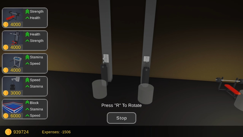 在这个游戏中,你将建造一个拳击馆并管理它。您将为您的健身房购买新的健身器材并让您的战士进行训练。拳击台、沙袋、长凳就是其中的一些。