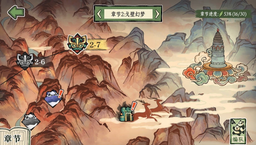 每个章节都有强大的青铜怪首领,尽可能提升熊猫的等级应对挑战吧。
