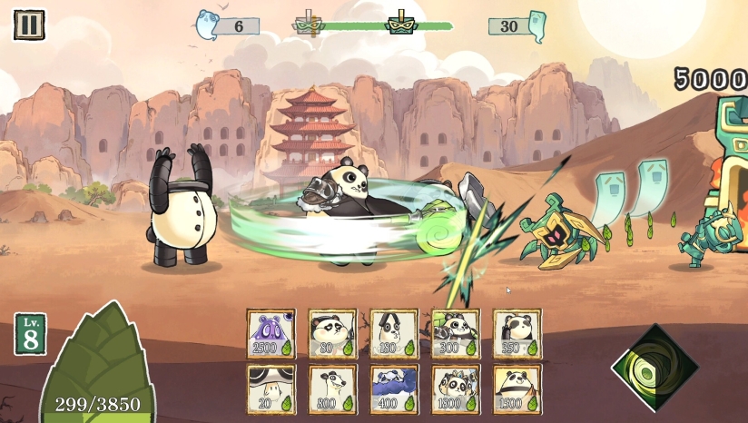 可以在游戏中获取不同外形的熊猫,只要给他们足够的竹笋就能帮你战斗。