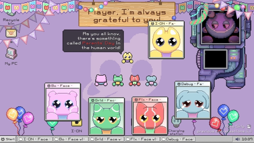 游戏采用像素艺术风格呈现,2D与3D效果完美融合,营造出独特的视觉体验。可爱的像素画风与诡异的氛围形成鲜明对比,增强了游戏的戏剧张力。场景设计巧妙地模拟了电脑内部环境,错误提示、系统故障等元素都融入了游戏世界中,增强了玩家的沉浸感。