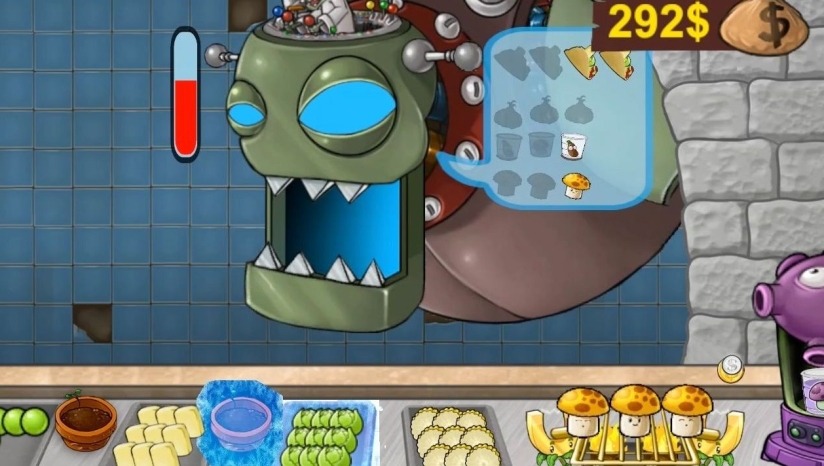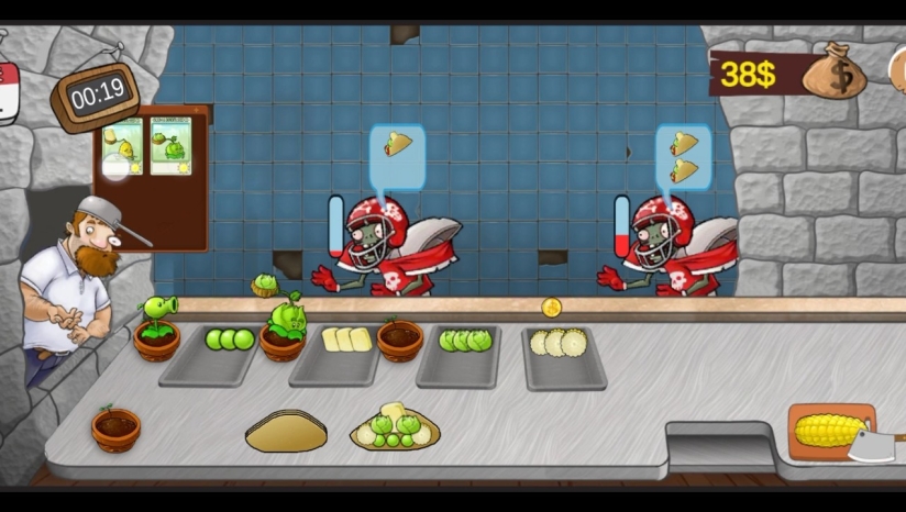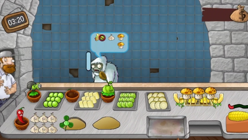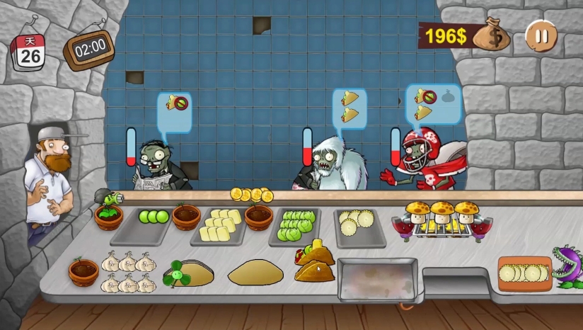 游戏的核心玩法结合了快速反应的经营模拟与策略性的资源管理。玩家需要在横版界面中,通过种植植物来获取食材:豌豆射手替代烤肉机提供豌豆籽粒,向日葵生产阳光菇,玉米投手则生成玉米粒。每一位僵尸顾客都有独特的订单需求和逐渐减少的耐心值,玩家必须在他们的耐心耗尽前准确制作并提交沙威玛,否则将面临攻击。游戏深度体现在设备升级与僵尸行为应对上。玩家可以解锁阳光蘑菇烧烤架、三叶草吹饼机等15种特色设备,提升制作效率。随着关卡推进,玩家还需应对僵尸Boss的挑战,考验极限操作能力。
