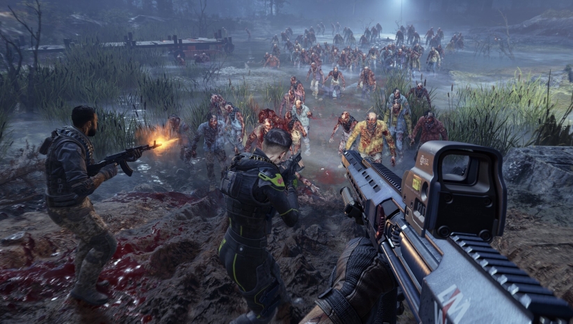 游戏最显着的特是浓郁的80年代氛围,这得益于传奇恐怖导演约翰·卡朋特的亲自参与。从合成器配乐到霓虹色调的美术风格,都充满了对经典动作恐怖片的致敬。尸潮体验是另一大亮点。游戏采用Saber的Swarm引擎,支持同屏出现大量怪物,营造出“尸山血海”的震撼场面。游戏还加入了特殊感染者系统,类似《求生之路》中的设计,怪潮中会夹杂具有特殊能力的敌人,如能释放毒气的“臭鼬”和会自爆的“核爆者”,增加了战斗的变数和挑战。