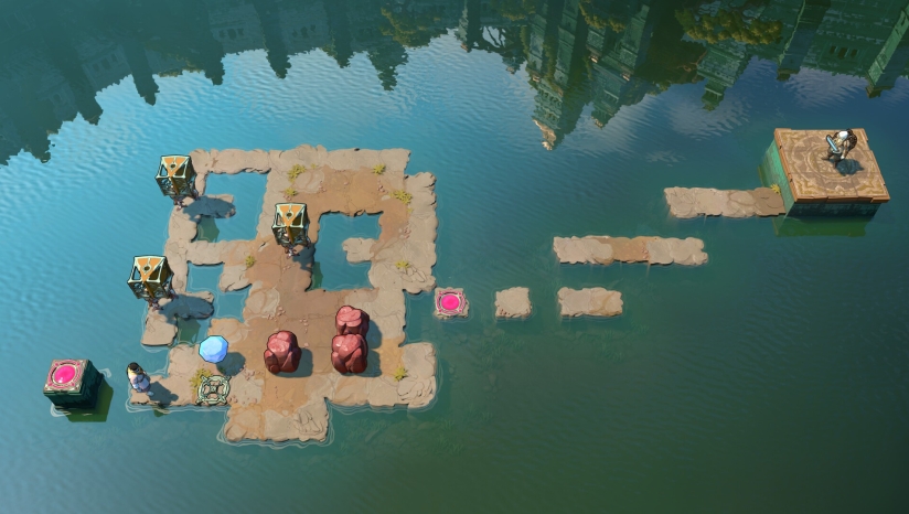游戏采用了自上而下的视角,这种视觉呈现方式是为了更好地展现基于图块的谜题结构。四个世界各有独特的视觉主题,从受《龙与地下城》启发的英雄世界,到使用镜子解决谜题的镜像群岛,每个区域都有鲜明的视觉风格。随着游戏进程,玩家将从2D平面谜题过渡到不同层次的3D谜题,这种视觉上的演进也为游戏玩法保持了新鲜感。游戏发售后,开发团队计划将这套引擎免费开源,为游戏开发者社区贡献新技术。
