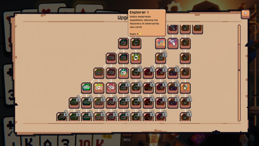 本作的核心玩法巧妙地融合了扑克牌组构筑与点击放置增量游戏的元素。玩家无需精通复杂的扑克策略,基本操作即是通过点击翻牌,组合成如对子、顺子等各类牌型来赚取金币。获得的金币可立即投入升级,用于提升翻牌效率、扩大手牌上限或解锁新的游戏功能,形成一种“钱生钱”的爽快循环。随着游戏进程,玩法维度不断拓展。玩家可以将手牌上限从传统的5张突破至最多7张,从而有机会组成如“七条”等离谱牌型。还可以解锁多张牌桌同时翻牌,极大提升效率。游戏引入了“远征收菜”机制,可以派遣小弟外出探索,带回具有特殊效果的异界卡牌或销毁无用卡牌,以优化牌组。此外,卡牌融合系统允许玩家将两张卡牌合成一张效果更强大的“怪物单卡”。游戏采用分阶段推进模式,完成阶段性目标后,会解锁新的花色、规则和挑战,并最终导向与BOSS小丑的决战。