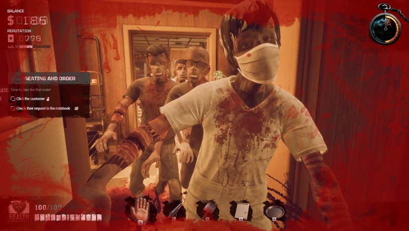 3、并非所有顾客都彬彬有礼。如果僵尸的饥饿计量条耗尽,它就会忘记礼貌,转而来吃你的大脑。拿起你可靠的霰弹枪,在一场疯狂的生死之战中保卫你的餐馆。
