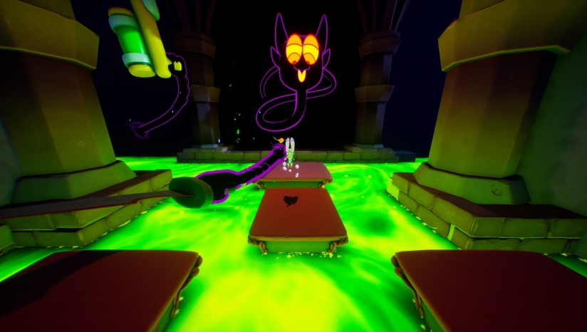 这款游戏的核心玩法独特地融合了3D平台动作与音乐节奏要素。在充满趣味与挑战的节奏战斗中,玩家需要同时考验平台动作技巧与音乐节奏感——攻击会随节拍袭来,而歌词则会为玩家提供预警信号。游戏的一个突出特点是音乐能够随玩家的玩法动态调整,使得每首歌都能带来新颖的体验。玩家可以运用多种魔法能力应对挑战:用雨伞魔杖滑翔越过障碍,召唤护盾与冰块,甚至活用诱饵或隐身来化解棘手情况。游戏设计了多种奇异领域供玩家探索,每个领域都有独特的反派角色,这些反派都拥有自己令人难忘的歌曲。