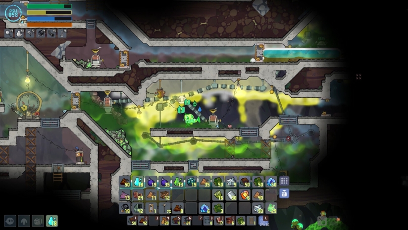 游戏玩法从《缺氧》的上帝视角殖民地管理转变为横版动作生存模式。玩家需直接操控复制人在开放世界中探索,利用“真空枪”收集并发射泥土、水流等资源,动态改造地形。核心挑战在于应对硬核的物理化学模拟系统,包括热力学传导(如电机过热引发火灾)、流体动力学(液体流动、蒸发)、气体扩散(氧气燃烧需平衡气压)等机制。玩家需通过建造基地、设计散热回路、制氧、种植食物等手段维持生存,并应对连锁灾难事件,如饮用水蒸发或基地火灾。游戏支持单人游玩及最多4人联机合作,玩家可分工协作管理基地。
