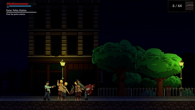 游戏以僵尸生存为主题,融合银河恶魔城元素,玩家需在充满亡灵的末日世界中探索、战斗并完成任务以逃出生天。