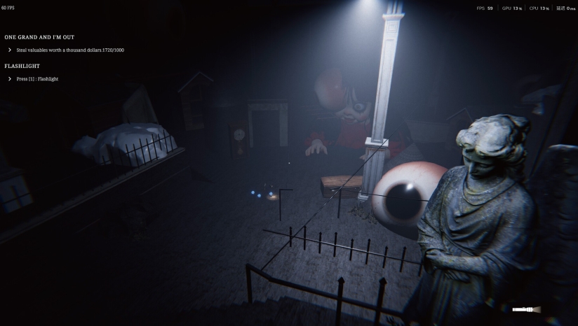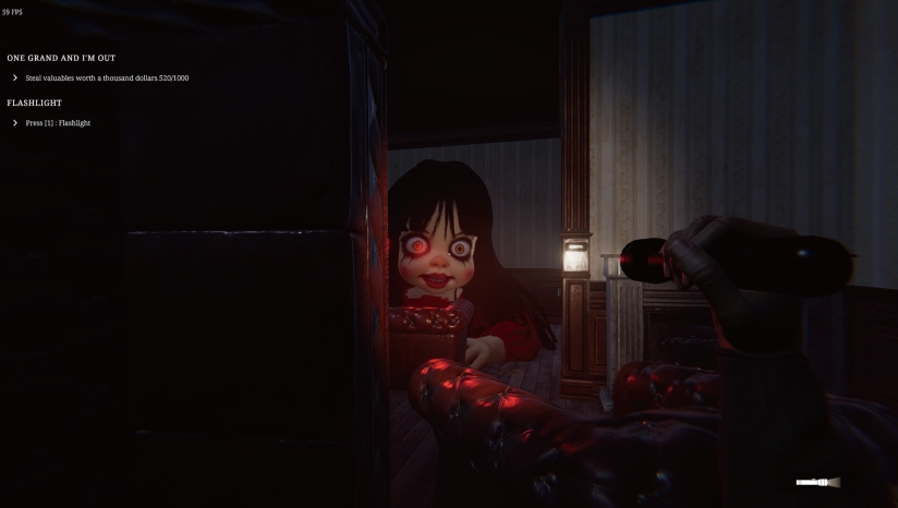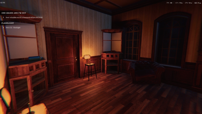 游戏的核心玩法结合了环境探索、物品收集和谜题解决。作为一名侠盗,玩家需要在豪宅的各个房间中搜寻关键物品和线索,同时规避潜在的危险。游戏进程中会触发各种剧情事件,玩家需要与之互动以推动故事发展。玩家的选择和行动会影响游戏的走向。值得注意的是,游戏包含突如其来的惊吓元素以及需要动脑思考的谜题,考验玩家的观察力、逻辑思维和心理承受能力。