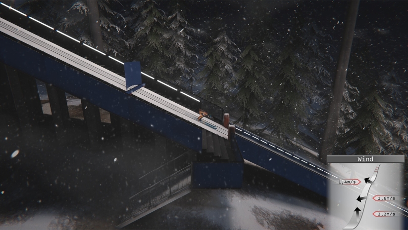 沉浸式氛围:动态天气、逼真的风况和详细的视觉效果再现了跳台滑雪的强度和美感。