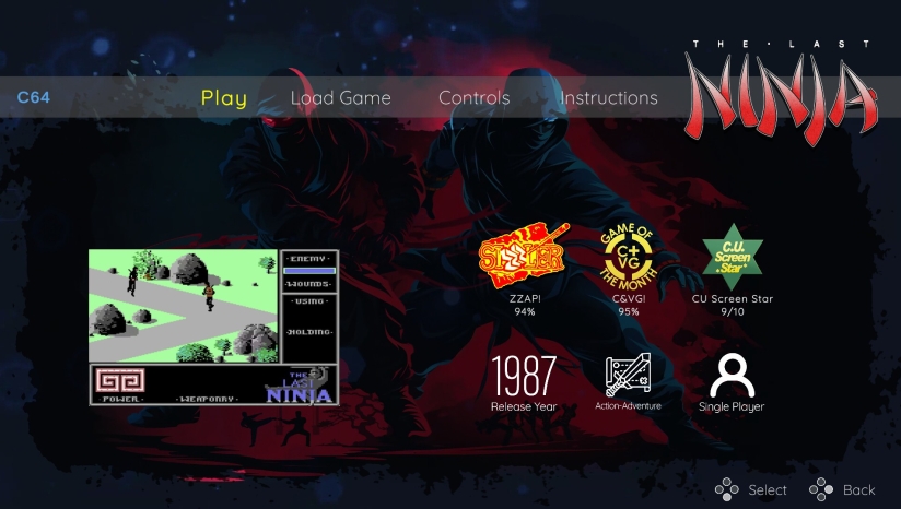 最后的忍者,包含C64和Amiga版本。这款于1987年由System 3开发和发行的开创性复古动作冒险游戏,为80年代的该类型设定了标准。穿越精心制作的环境,解决谜题,与各种敌人战斗。《最后的忍者》不仅在全球取得了商业上的成功,也获得了评论界的高度评价,赢得了众多奖项,包括“年度游戏”、“最佳8位图形”和“最佳音乐原声带”。其遗产作为一款深受喜爱的经典游戏延续至今,继续激励和影响着动作冒险类型。《最后的忍者》系列在三部曲中共售出超过2300万份,巩固了其作为8位计算机游戏时代最具影响力和最畅销游戏之一的地位。